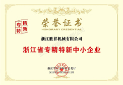 獲得浙江省專精特新中小企業(yè)榮譽(yù)證書
